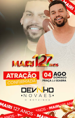 Devinho Novaes e Brankinho Pancadão confirmados no aniversário de Mairi-BA